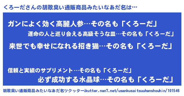| 意味不明あだ名 | 『永久保存くろーだ』『自称くろーだ』 |