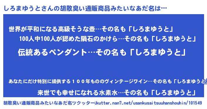 | 伝説のあだ名 | 『解き放たれた遊び人しろまゆうと』 |