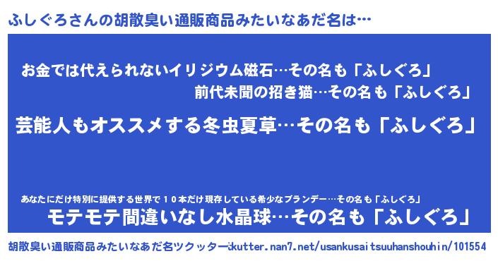 | ヒーロー風カッコイイあだ名 | 『究極戦士フシグロ』『愛の使者ふしぐろ』 |