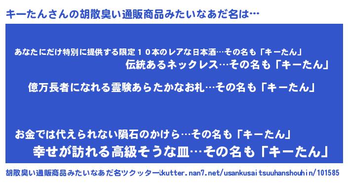 | ヘコむあだ名 | 『キーもー』『なまこ酢』『キーっぺ』 |