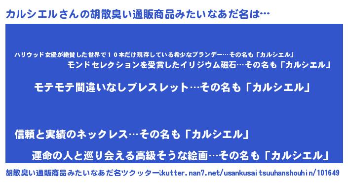 | 男性向けラノベタイトル風あだ名 | 『カルシエルの憂鬱』 |