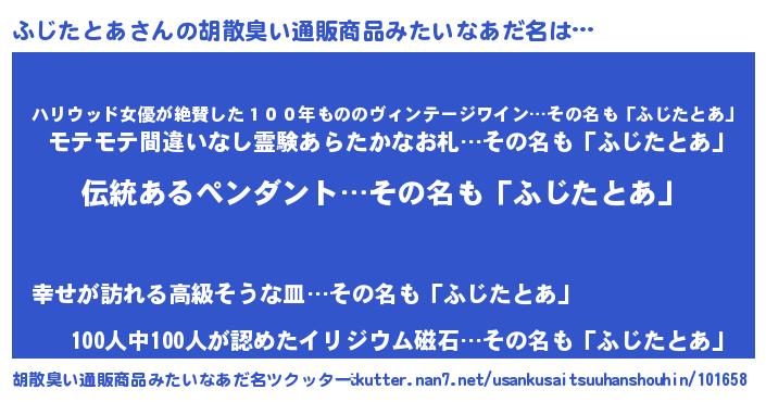 | 意味不明あだ名 | 『とにかく怪しいふじたとあ』 |