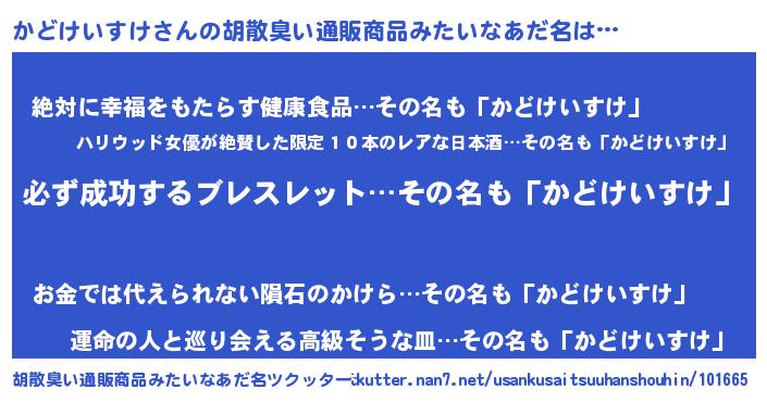 | ヘコむあだ名 | 『かどふぇ~』『かどけいすけ(爆)』 |