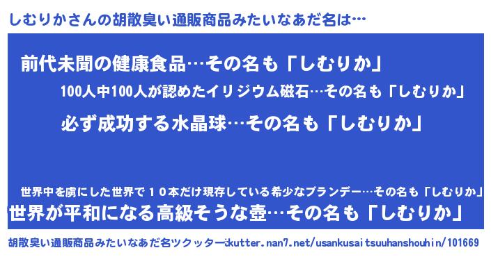 | 意味不明あだ名 | 『ペロリンしむりか』『永久保存しむりか』 |