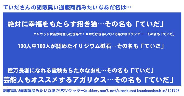| ヘコむあだ名 | 『ていだ(爆)』『ていにー』 |