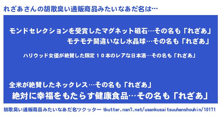 | 意味不明あだ名 | 『住所不定無職れざあ(39歳)』 |