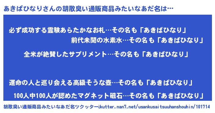 | 意味不明あだ名 | 『とにかく怪しいあきばひなり』 |