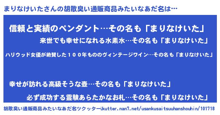 | 意味不明あだ名 | 『住所不定無職まりなけいた(9歳)』 |
