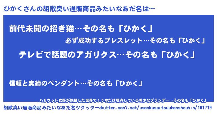 | 意味不明あだ名 | 『自称ひかく』『永久保存ひかく』 |
