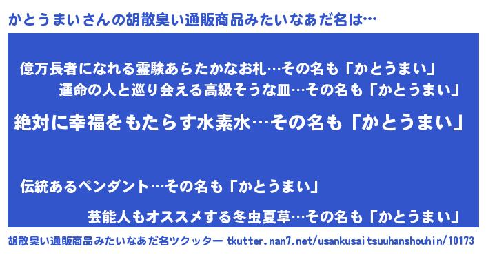| 意味不明あだ名 | 『永久保存かとうまい』『自称かとうまい』 |