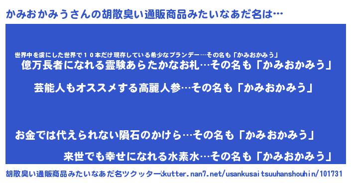 | 伝説のあだ名 | 『古文書に記された吟遊詩人かみおかみう』 |