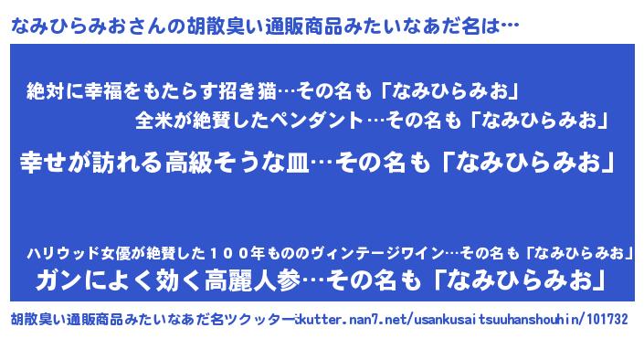 | ファンタジー風あだ名 | 『エターナルナミヒラミオー』 |