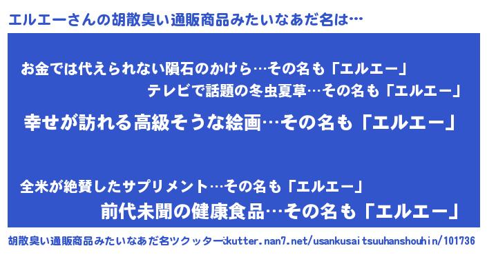 | 女子向けラノベタイトル風あだ名 | 『エルエーの雑貨屋さん』『闇のエルエー』 |