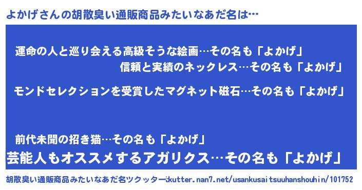 | 女子向けラノベタイトル風あだ名 | 『死神よかげの再婚』『よかげの婚約者』 |