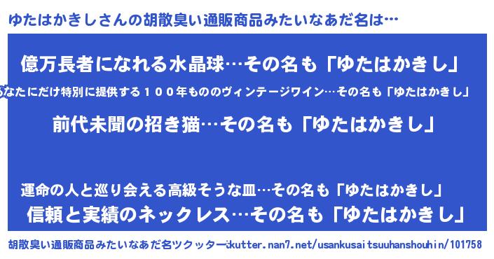 | 意味不明あだ名 | 『永久保存ゆたはかきし』 |
