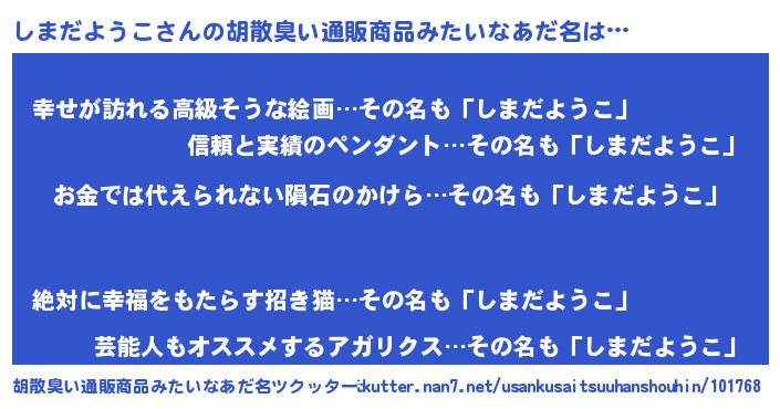 | 意味不明あだ名 | 『眠気覚ましガムしまだようこ味』 |
