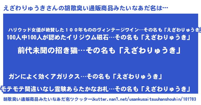 | 意味不明あだ名 | 『永久保存えざわりゅうき』 |
