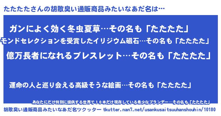 | ヘコむあだ名 | 『たたにー』『牛乳』『たたっぺ』 |
