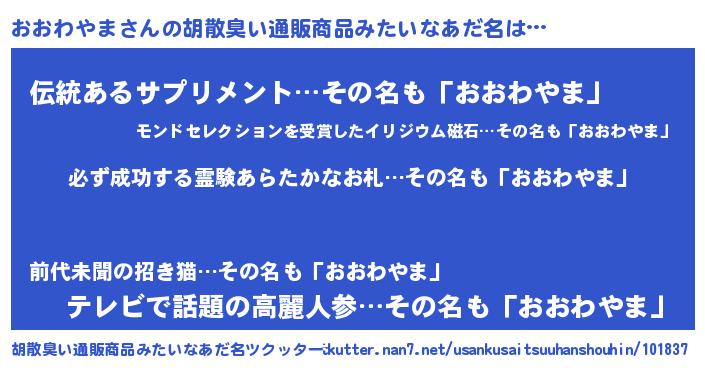 | 男性向けラノベタイトル風あだ名 | 『おおわやまの憂鬱』 |