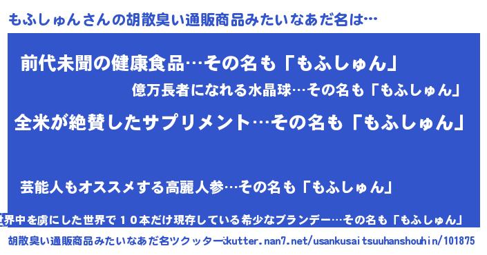 | ヘコむあだ名 | 『もふお』『もふしゅん(苦笑)』 |