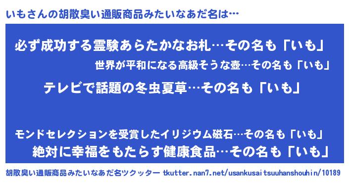 | 意味不明あだ名 | 『自称いも』『ペロリンいも』 |