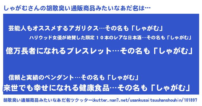| ヘコむあだ名 | 『しゃにー』『しゃがむ(笑)』 |
