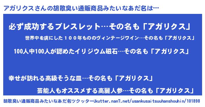 | ヒーロー風カッコイイあだ名 | 『正義の使者アガリクス』『仮面アガダー』 |