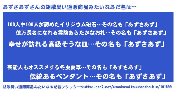 | 女子向けラノベタイトル風あだ名 | 『あずさあずの雑貨屋さん』 |