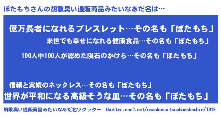 | ヒーロー風カッコイイあだ名 | 『正義の使者ぼたもち』『ネオボタモチ』 |