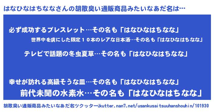 | ヘコむあだ名 | 『はなもー』『はなひなはちなな(笑)』 |