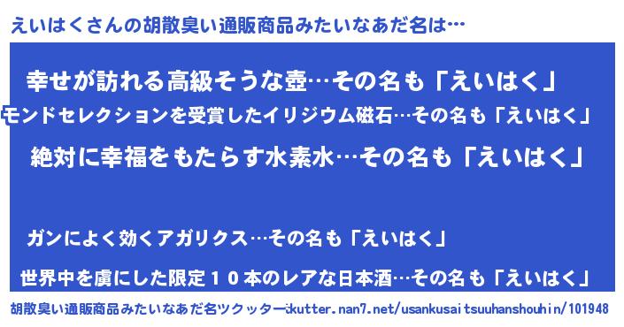 | ヘコむあだ名 | 『えいはく(苦笑)』『牛乳』 |