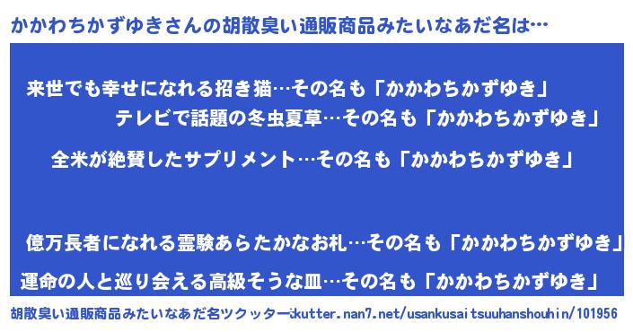 | 意味不明あだ名 | 『とにかく怪しいかかわちかずゆき』 |