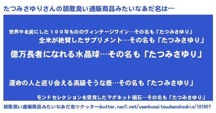 | 恥ずかしいあだ名 | 『プリティーたつみさゆり』『たつっちょ』 |