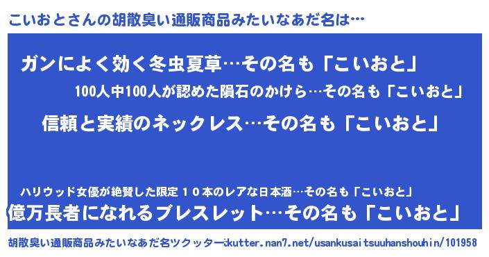 | 欧米人風あだ名 | 『ウサインこいおと』『マイケルこいおと』 |