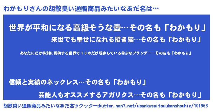| 男性向けラノベタイトル風あだ名 | 『この素晴らしい世界にわかもりを!』 |
