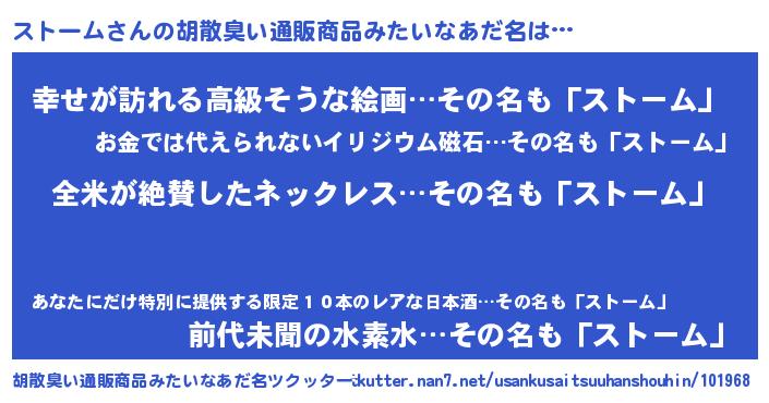 | 女子向けラノベタイトル風あだ名 | 『ストーム様がみてる』 |