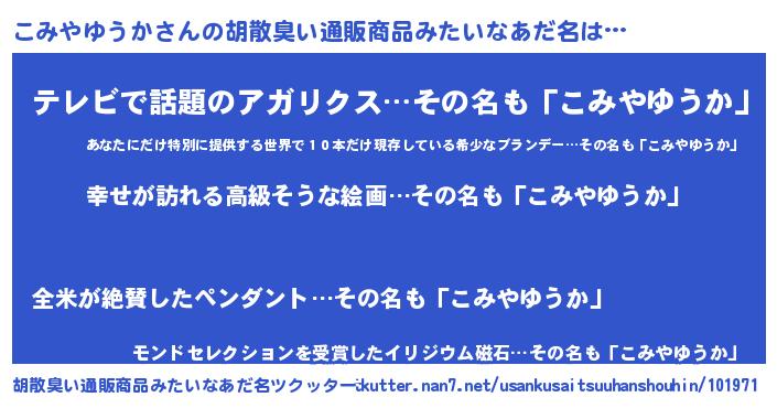 | 意味不明あだ名 | 『こみやゆうかフォーエバー』 |