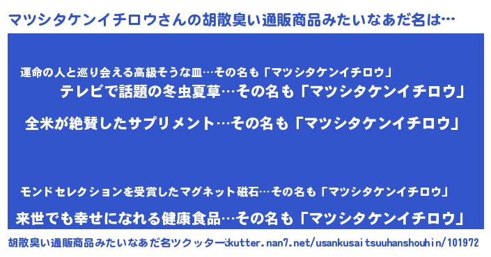 | 意味不明あだ名 | 『とにかく怪しいマツシタケンイチロウ』 |