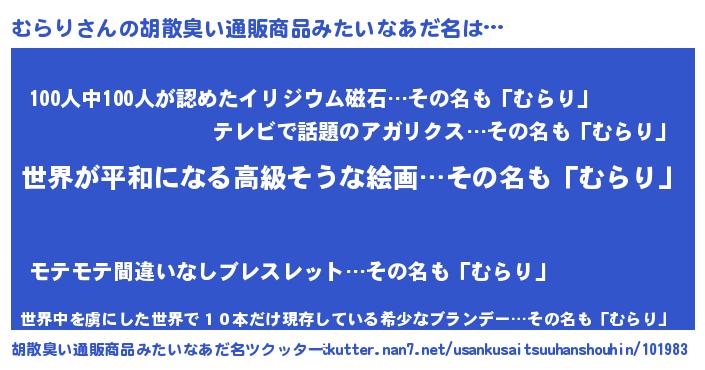 | 意味不明あだ名 | 『むらりフォーエバー』『自称むらり』 |
