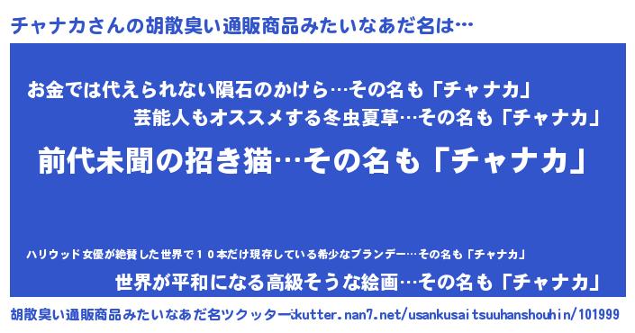 | 意味不明あだ名 | 『永久保存チャナカ』『自称チャナカ』 |