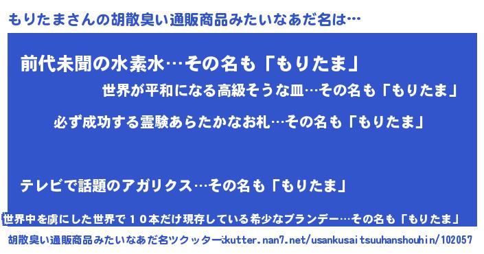 | ヘコむあだ名 | 『もりもー』『もりたま(苦笑)』 |