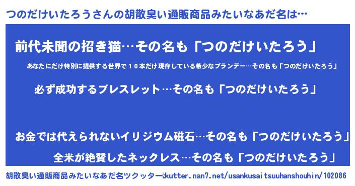 | 肩書あだ名 | 『つのだけいたろう大佐』 |