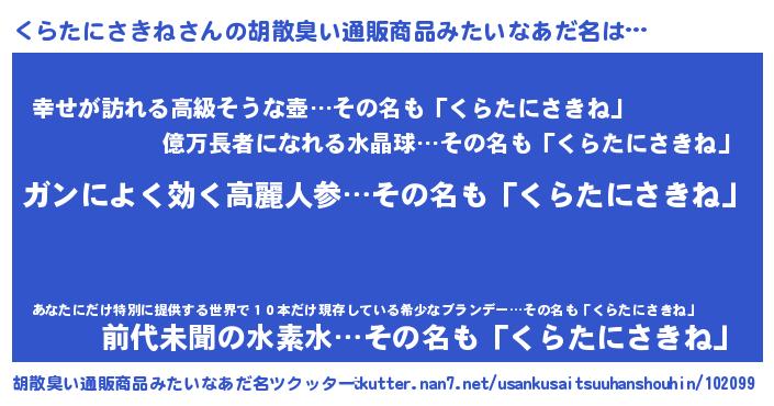 | 肩書あだ名 | 『くらたにさきね閣下』 |