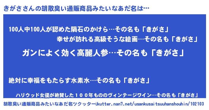 | 女子向けラノベタイトル風あだ名 | 『きがさなんてお断りですっ。』 |