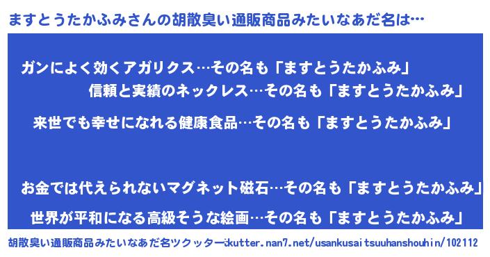 | 可愛いあだ名 | 『ますとうたかふみママ』『ますうちぇる』 |