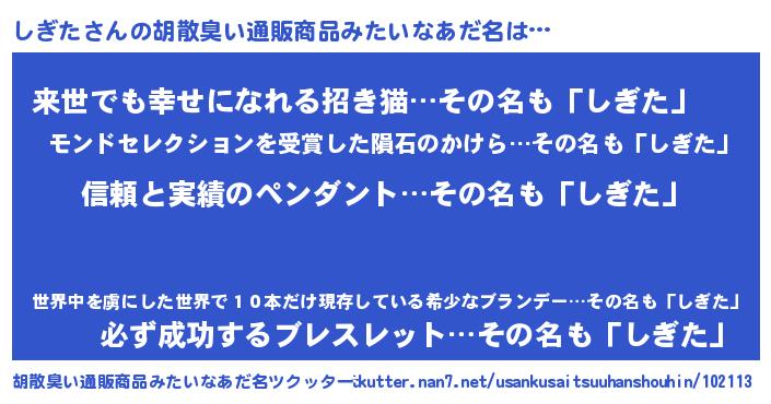 | ヘコむあだ名 | 『しぎぷりん』『しぎた(笑)』 |