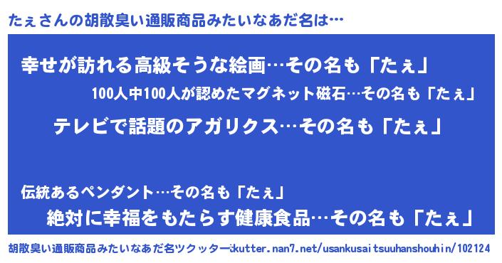| ヘコむあだ名 | 『なまこ酢』『たぇ(苦笑)』『たぇを』 |