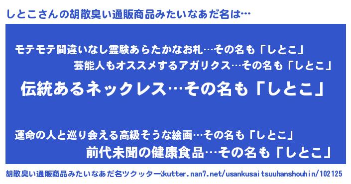 | 意味不明あだ名 | 『とにかく怪しいしとこ』『自称しとこ』 |