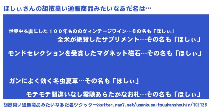 | ヘコむあだ名 | 『ほしふぇ~』『ほしお』『なまこ酢』 |