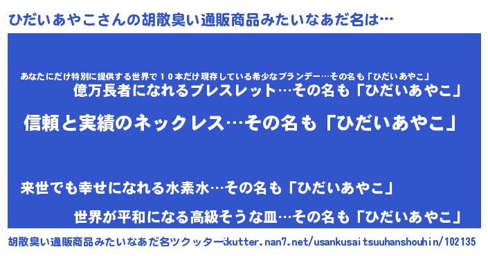 | 意味不明あだ名 | 『とにかく怪しいひだいあやこ』 |